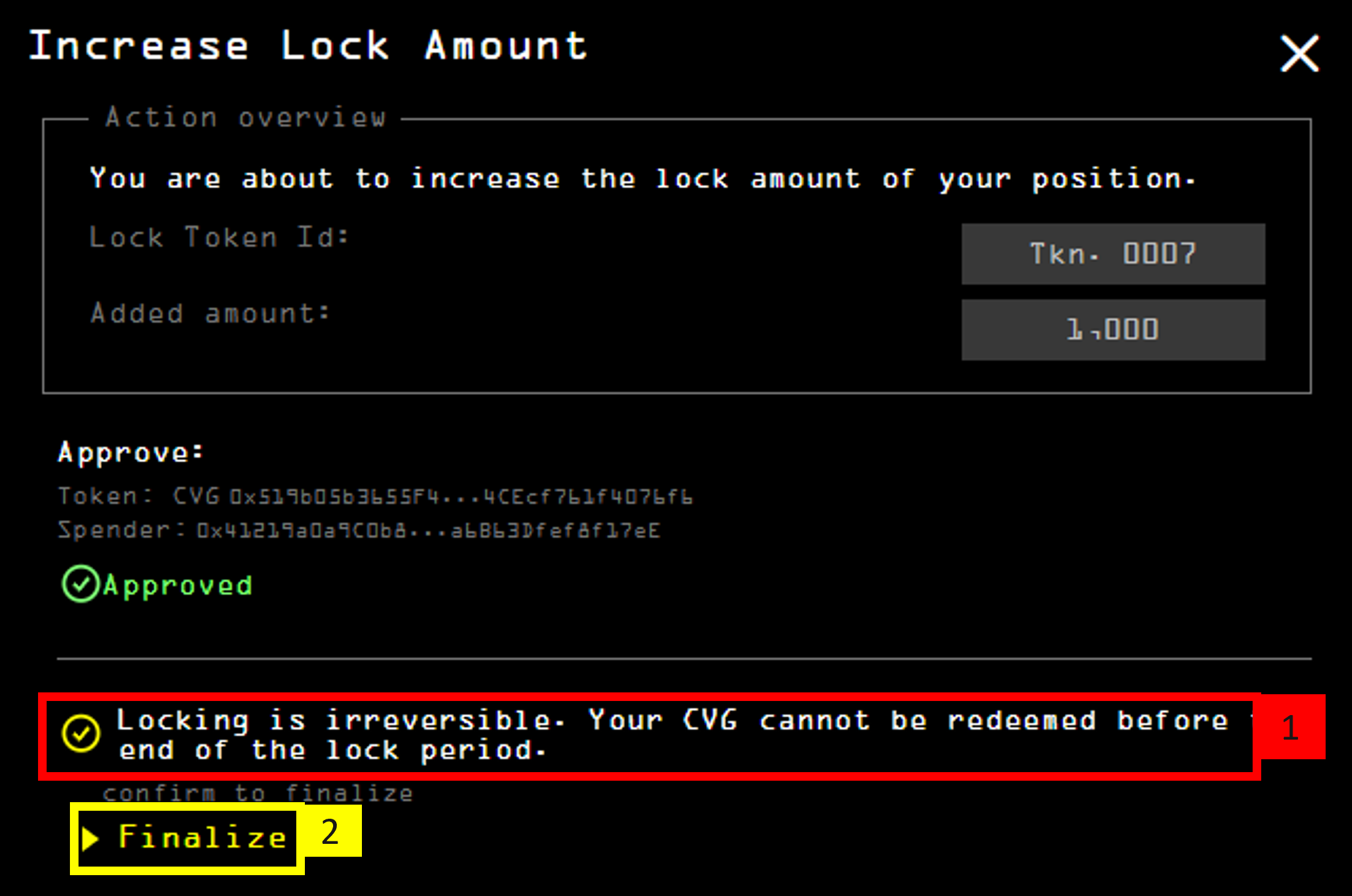 1. Acknowledge that locking **`CVG`** is irreversible;